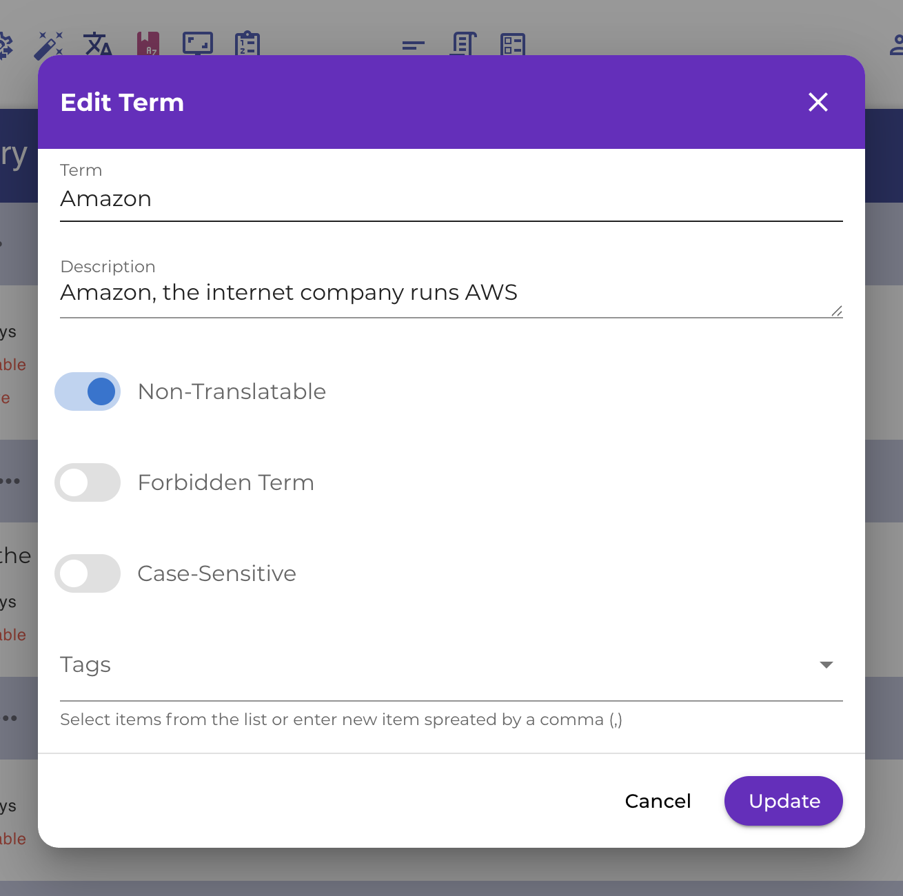 Glossaries also pay dividends when source content changes. When a product is renamed or a UI term is updated, changing the glossary entry flags every string where the old term appeared — making targeted reviews straightforward rather than requiring a full re-check of all translations.